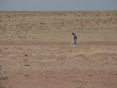 My trips to the Arizona strewnfield wouldn’t have been as rewarding or as pleasant without the hospitality of Holbrook resident Dave Andrews (below, on right). He has graciously provided room and board, but most especially, he has also provided his expertise. Dave knows the strewnfield better than anyone, and is always willing to share his hunting techniques!