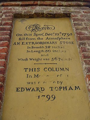 In the summer of 2003 I traveled to the U.K. to visit my friend Rob Elliott and his wife Irene, and to journey to some meteorite-related destinations. Rob and Irene were wonderful hosts and a good time was had by all (although with somewhat awkward moments involving portions of haggis and black pudding). We then drove to one of the more important historic sites in meteoritics, Wold Cottage in Wold Newton, Yorkshire. It was on this site that a meteorite fell on December 13, 1795, dragging the nascent field of meteoritics kicking and screaming into the world of true science. Prior to the Wold Cottage fall (and virtually contemporary falls in Siena, Italy, and L’Aigle, France) the scientific explanation for rocks falling from the sky was far from settled. The idea of cosmic stones of extraterrestrial origin raining down on the Earth was generally viewed with the same contempt as UFO-claims are today! When Yale scientists proposed the now accepted idea of meteorite-origin to describe yet another fall in Weston, Connecticut (1807), none other than Renaissance-man Thomas Jefferson is said to have stated, “I would more easily believe that two Yankee professors would lie, than that stones would fall from heaven!” But as several unmistakable falls occurred within a few years of each other in front of plenty of witnesses, and as chemical analysis techniques developed, the truth soon became apparent.