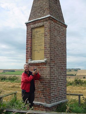 The Wold Cottage itself is now a bed-and-breakfast inn, and we stayed the night. After about a half-mile hike through some soggy fields, the spire of the monument erected to commemorate the meteorite fall shows itself on a rise in the distance.